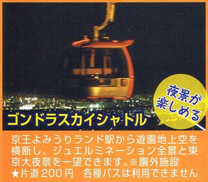 イベント期間中に遊園地内で配布されているマップ(写真左は表面)。このイベントにあわせたグッズ類も園内で発売されますが、2010年は残念ながらゴンドラ関連デザインの商品はありませんでした。ただ、このマップの内側にスカイシャトルに関する記述(写真右)がありますのでゴンドラ関連の唯一の記念品として良いです。二つ折りでB5サイズです。