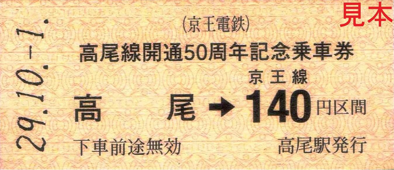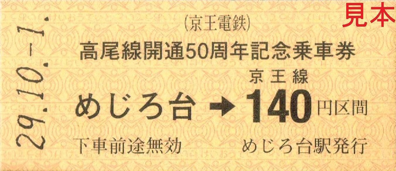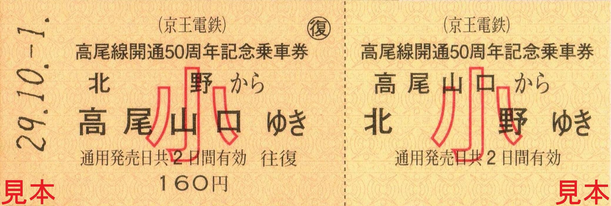 《高尾線開通50周年記念乗車券(2017年10月1日発売)》