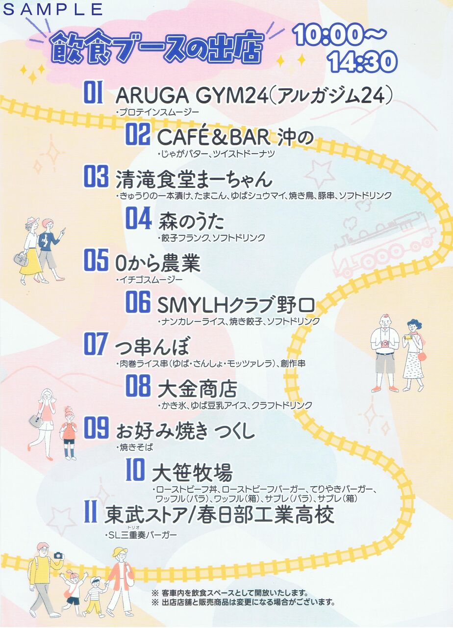 リーフレットの表面と裏面です。表面下部にはSL以外に東武特急(日光詣スペーシア、リバティ、スペーシアX)の写真も使用されていますが、イベント同日に運行された特急スペーシア上野日光(復路。下記リンク記事参照)ではオリジナルカラースペーシアが使用されました。《JR東日本高崎支社 お仕事体験》