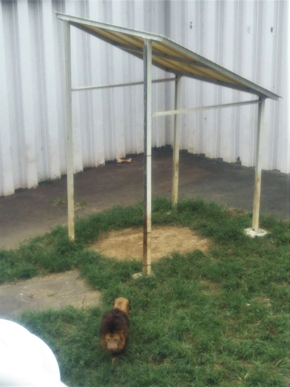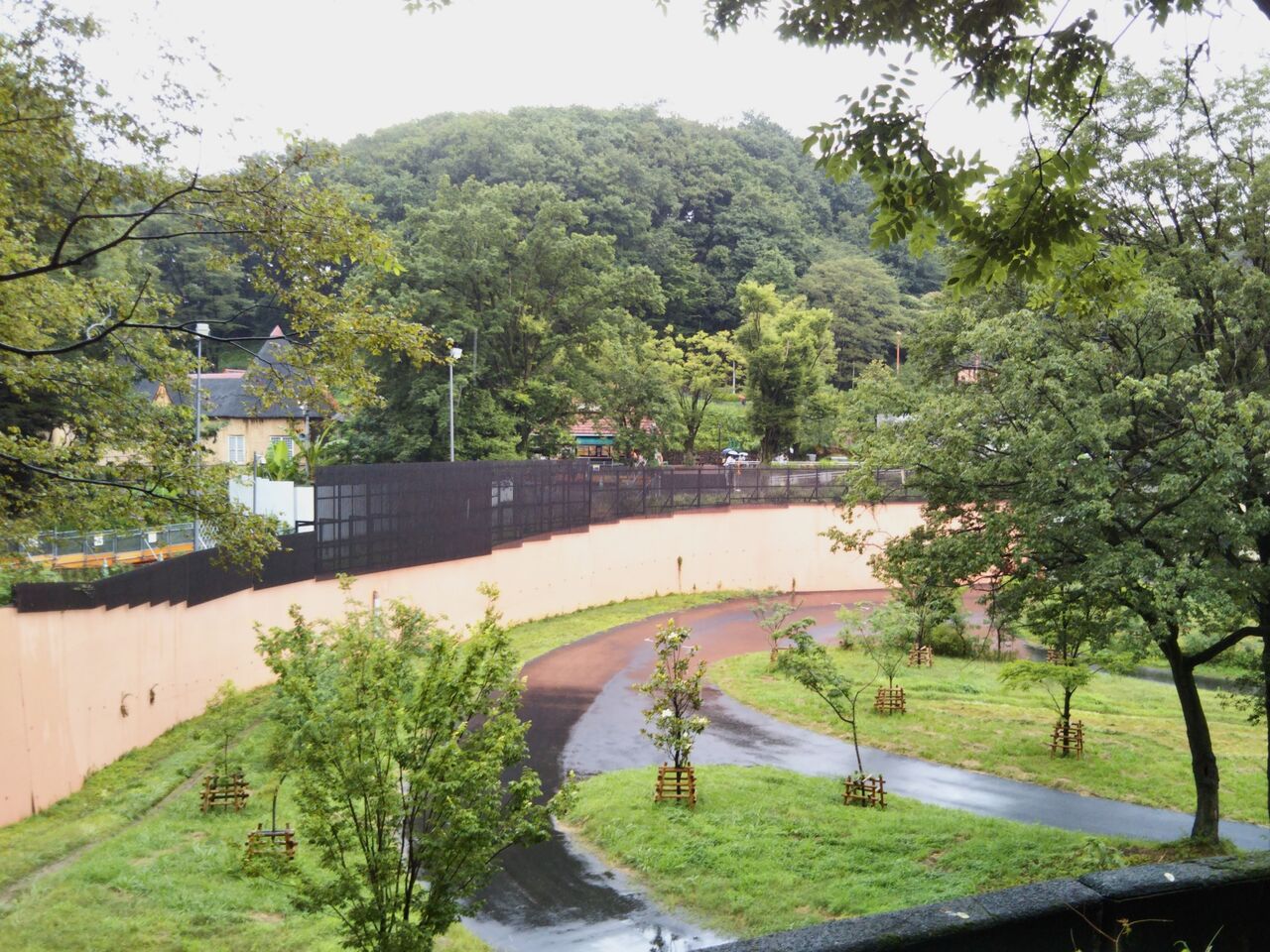 休止期間中のアフリカ園・ライオンバス周辺の様子。ライオン放飼場は仮のわずかなスペース。
