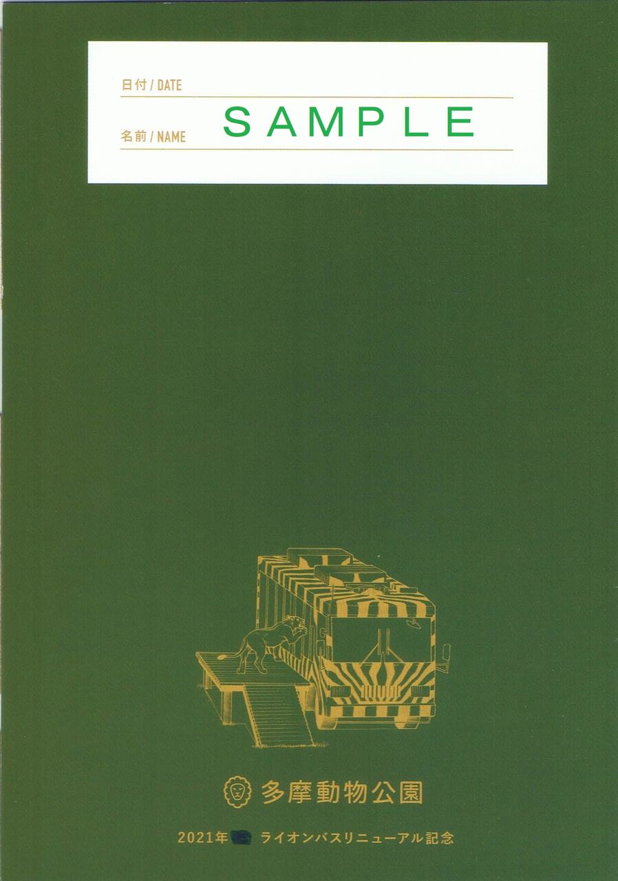 正門前広場で各日先着300部が配布されました。A5サイズで野生動物研究者が野外調査で使用しているノート『フィールドノート』風の冊子です。表面はライオンバスステーションのロゴ、裏面はライオンバスのデザイン。なお、裏面下部に記載された『2021年』『ライオンバスリニューアル記念』の間にも何か記載していたようですが、マジックで消された状態で配布されていました。――――――――――――――――――――――――――――――――――――――