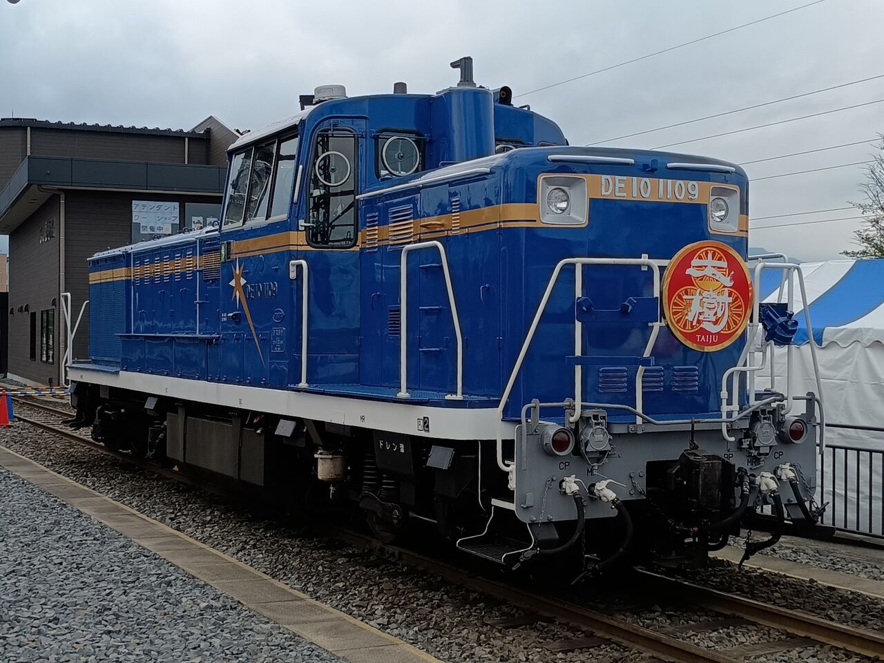 DL車両ヘッドマーク展示コーナーはDE10 1109号機に大樹の様々な色やふたらのヘッドマークを時間毎に変えて装着。