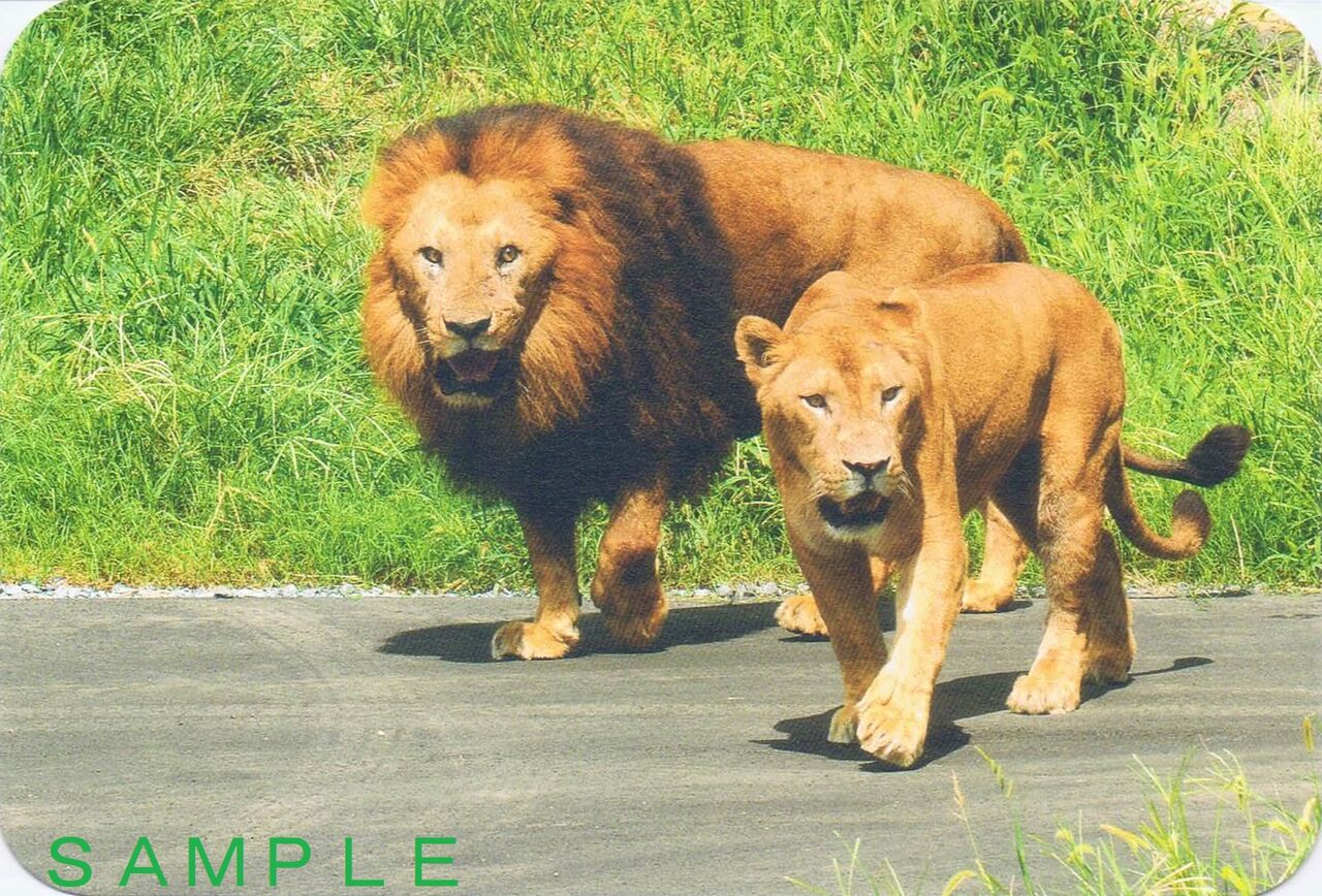 ライオンバスリニューアルオープン記念イベント『「フィールドノート:アフリカの動物たち」を持って動物観察にでかけよう!』の開催期間中、正門近くのウォッチングセンターでゴール達成者に配布されるポストカードです。《ウォッチングセンター ライオンポストカード(2021年7月8日収集)》