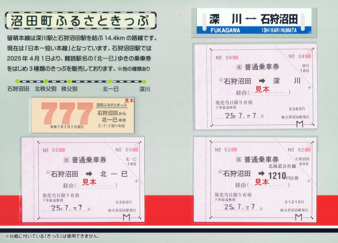 『まいてつ -pure station-』から通算して第2弾となる記念乗車券でA4サイズの台紙+D型硬券往復乗車券1枚+定期券サイズの硬券一日乗車券1枚のセット。写真は台紙外面の表と裏。