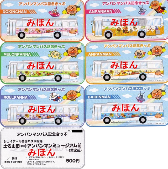 JRバスの手売り券が少なくなった現在では、記念切符も貴重な存在といえます。12/5に紹介したJR四国(鉄道)の讃岐路義経号記念乗車券と同様、現在同社の通販でJR四国バス大栃線の『アンパンマンバス記念きっぷ』を取り扱っています。図柄は写真の6種類(一番下は全ての柄に共通する裏面)で、土佐山田←→アンパンマンミュージアム前間の大人用500円の乗車券が6枚で3000円。JRバスの記念切符はJRバス関東でも割と高価なセットものが多かったと思いますが、一応、B5版(B4二つ折り)の『記念きっぷホルダー』に収められており豪華です。同線沿線にアンパンマンミュージアムがあるので、アンパンマン柄のバスにしているようです。JRバス各社では路線の縮小が進んでいましたが、このような立派な記念切符が発売される事から同社の期待も感じられ、子供から大人まで幅広い層に支持され続けるでしょう。