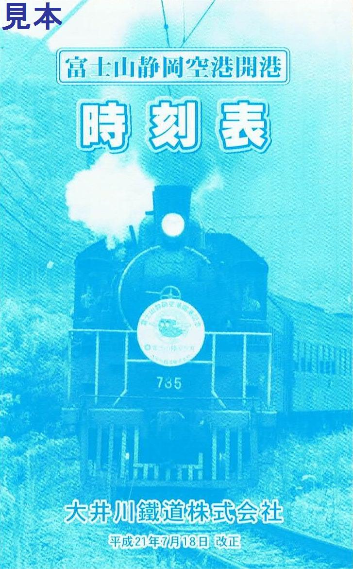 平成21年7月18日ダイヤ改正時のポケットサイズの時刻表です。表紙は『富士山静岡空港開港記念』ヘッドマークを付けたC56形蒸気機関車。
