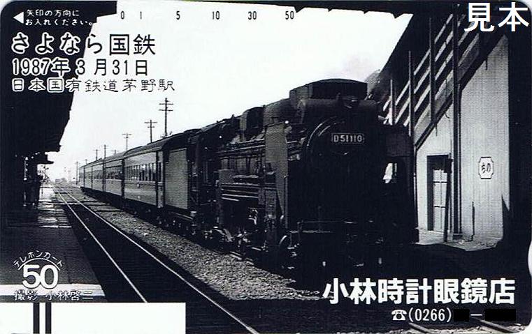 《茅野駅さよなら国鉄記念テレホンカード小林時計眼鏡店》