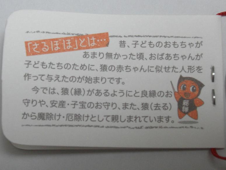 この商品のタグには、目と口の付いたさるぼぼのキャラクターが描かれていますが、こちらの方も商品化したら面白そうです。