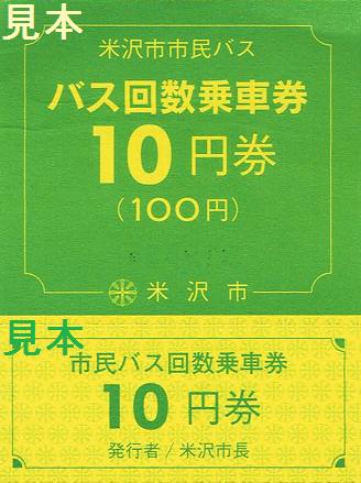 平成19年7月1日に米沢駅構内の観光案内所で購入。写真左は、市民バス回数乗車券10円券。