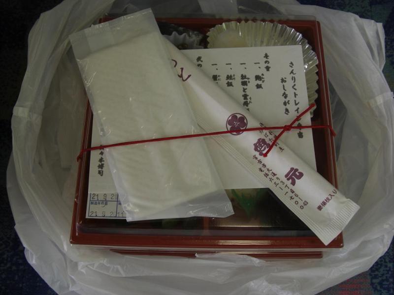さんりくトレイン運転期間中に宮古駅で発売される弁当。みどりの窓口での事前予約以外に、久慈行き列車内では区界駅到着時までに車内備え付けの申込書で当日予約も可能。1,700円と高価ですが、最近多く見られる過剰に高級感を出そうとしているのに中身が中途半端なものとは全く違い、上質で良い弁当です。写真左はJR東日本みどりの窓口で購入した『さんりくトレイン弁当引換券』。