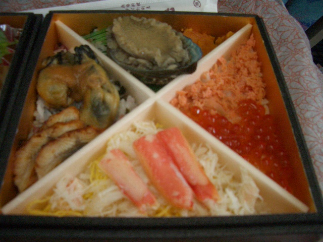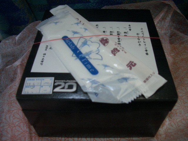 さんりくトレイン運転期間中に宮古駅で発売される弁当。みどりの窓口での事前予約以外に、久慈行き列車内では区界駅到着時までに車内備え付けの申込書で当日予約も可能。1,700円と高価ですが、最近多く見られる過剰に高級感を出そうとしているのに中身が中途半端なものとは全く違い、上質で良い弁当です。写真左はJR東日本みどりの窓口で購入した『さんりくトレイン弁当引換券』。《平成19年4月30日引換分》