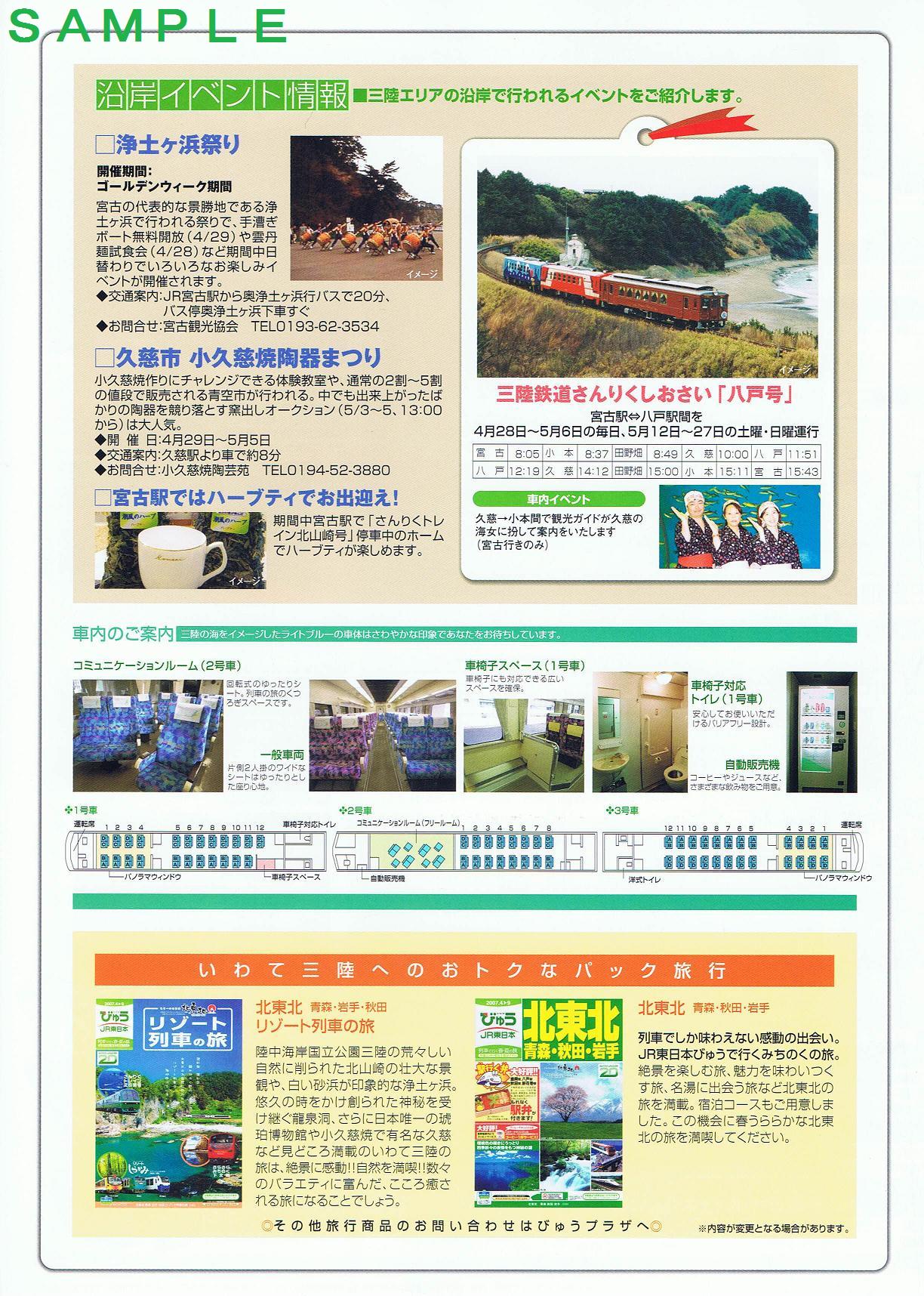 平成21年9月20日にさんりくトレイン北山崎号車内で入手したパンフレット。この列車単独のパンフレットでは無くなりました。