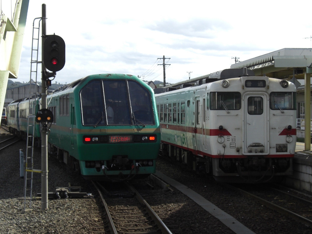 平成21年乗車時は、3連休の影響か盛岡出発時で8〜9割程度の乗客がおり、乗車数日前には連休3日分の指定席券が完売していました。この日も三陸鉄道へ乗り通す客が半数以上。さらに宮古からの乗客も多くおり、(宮古〜久慈間は定期列車のスジでの運行ですが)乗り入れ列車としては成功している方だと思います。