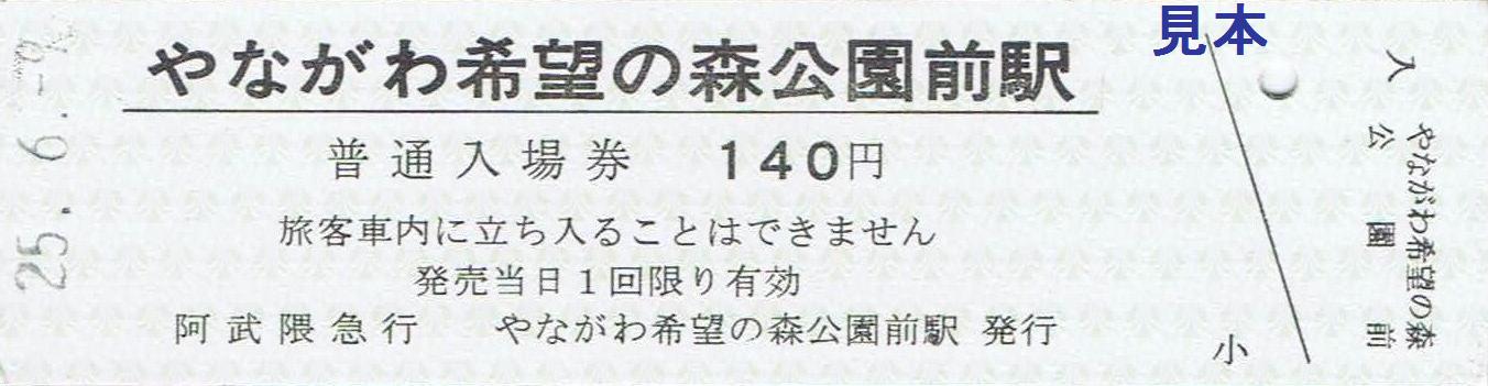〔やながわ希望の森公園前駅普通入場券(乗車記念品)〕