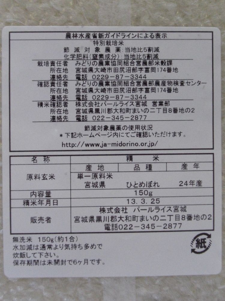 〔槻木→角田間の車内 パールライス宮城 プレミアムひとめぼれみやぎ吟撰米〕