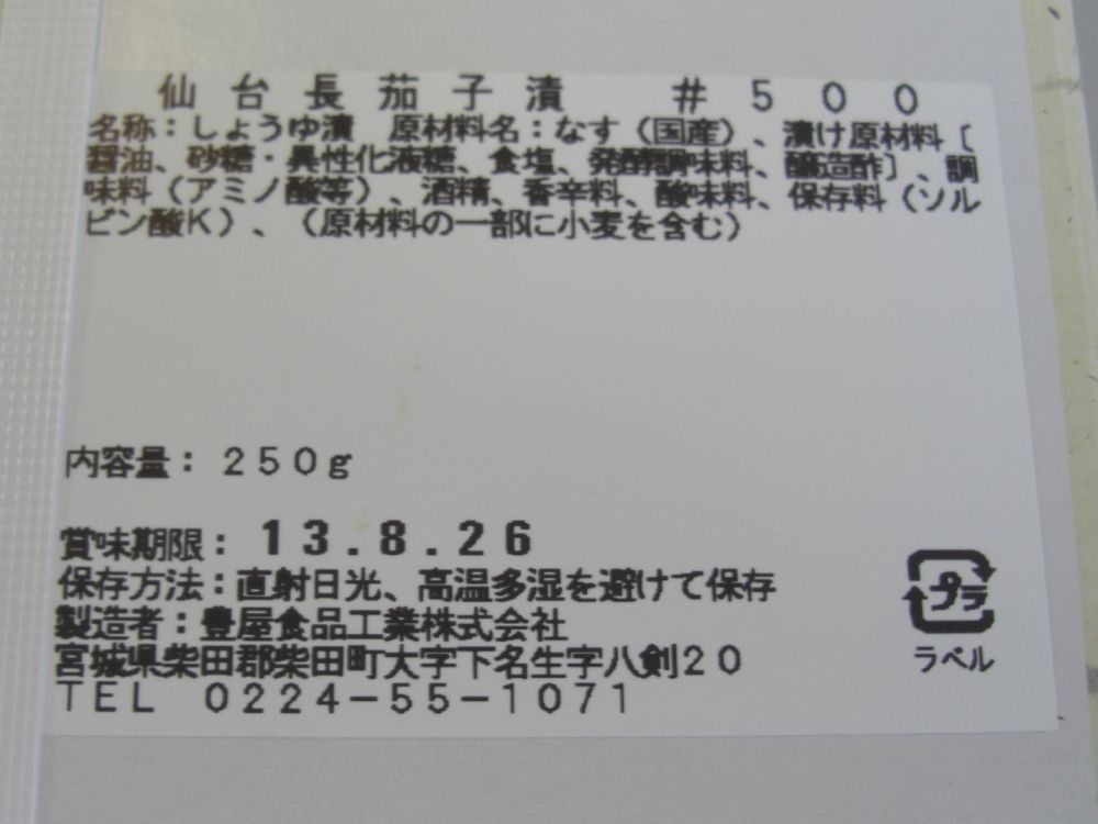 〔槻木→角田間の車内 豊屋食品工業 長茄子漬〕