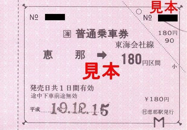 ・普通乗車券 恵那→東海会社線180円区間――――――――――――――――――――――――――――――――――――――