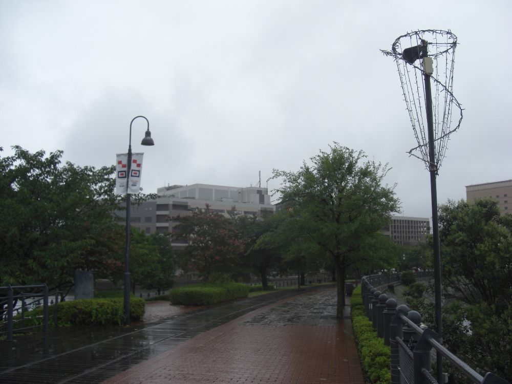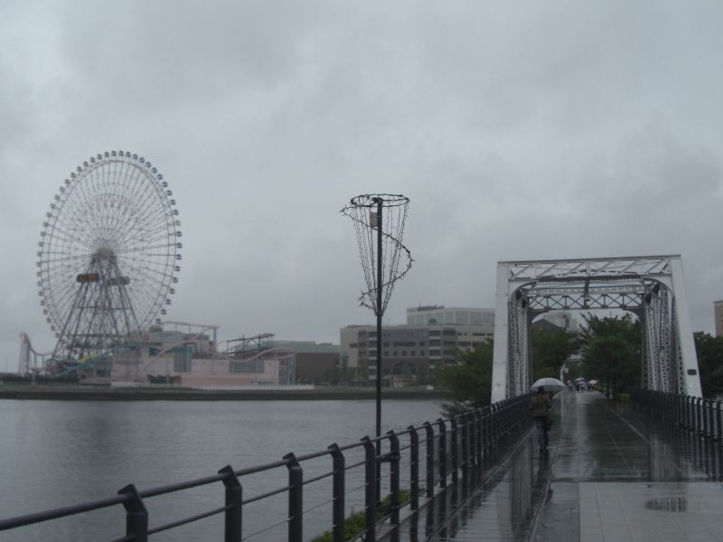 日本丸駅前の鉄橋を超えた地点からワールドポーターズ付近までは列車交換用に複線となっていました。《ワールドポーターズ付近》