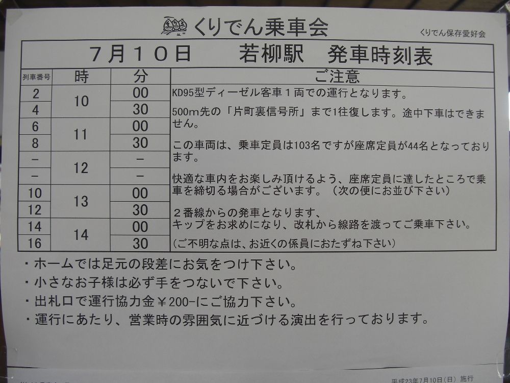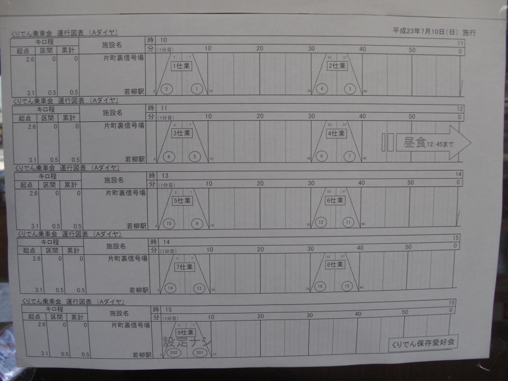 旧若柳駅から500m石越寄りにある片町裏信号所までの間で廃線となったくりはら田園鉄道の動態保存が行われています。『くりでん乗車会』では1乗車につき1人200円の車両運行協力金で乗車可能。乗降は旧若柳駅でのみ可能で、片町裏信号所で折り返しする往復約10分間・1kmの乗車となります。使用車用は基本的にKD95形になりますが、イベント時にはKD11形や乗車はできませんがDB101牽引の貨物列車が運行される事もあります。