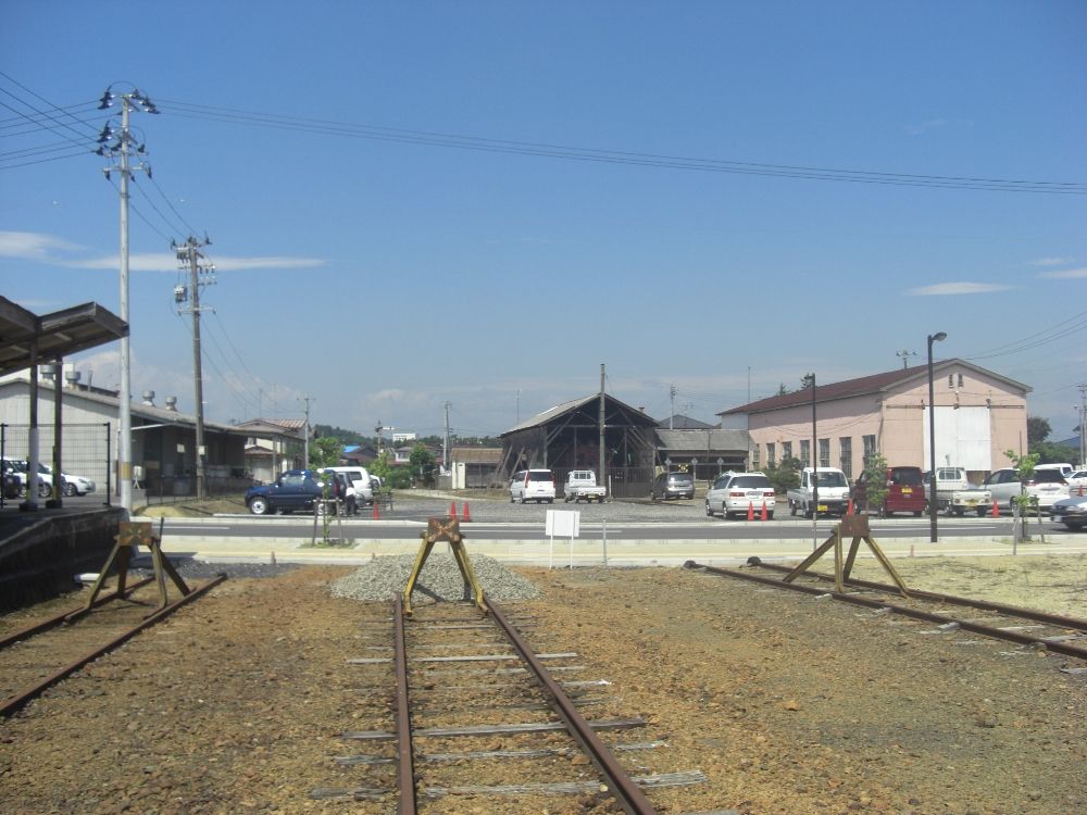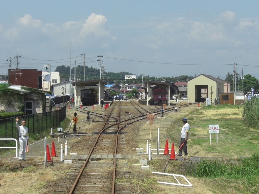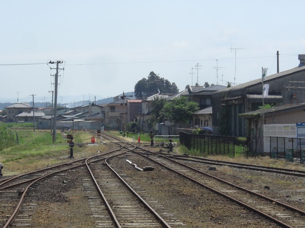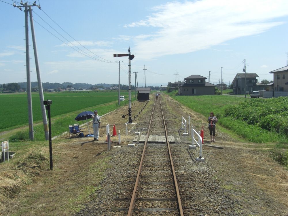 旧若柳駅構内の栗駒寄りを分断する形で道路が建設されました。そのため、保存運転は石越方面への線路を利用して行われます。写真左右は分断箇所から石越方面を撮影したもの。