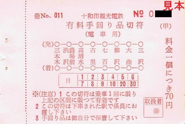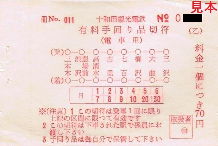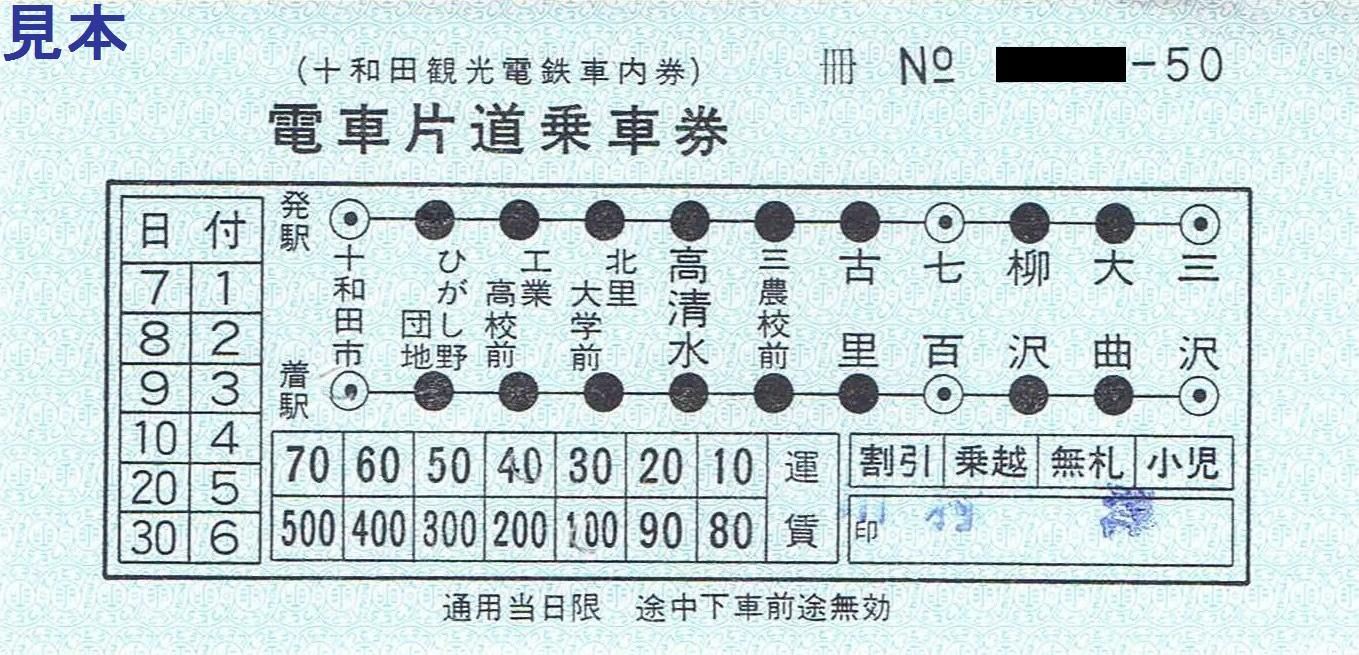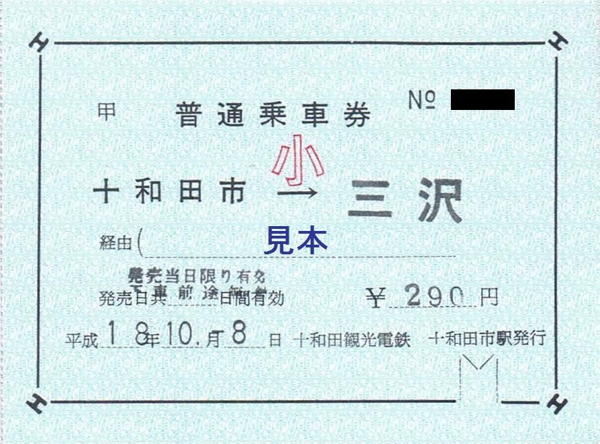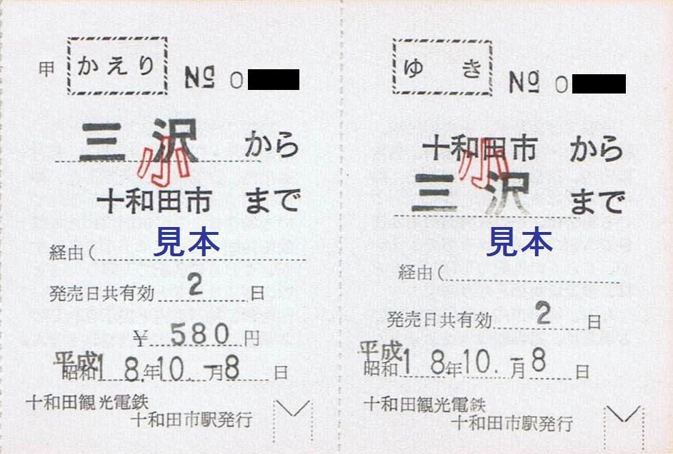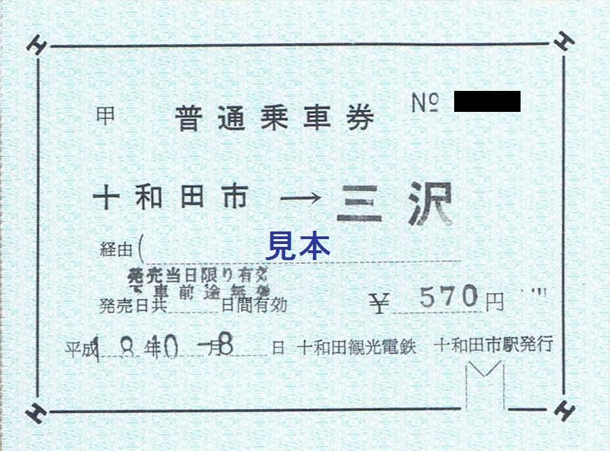 有料手回り品切符は十和田市駅改称前である三本木駅の駅名入り。