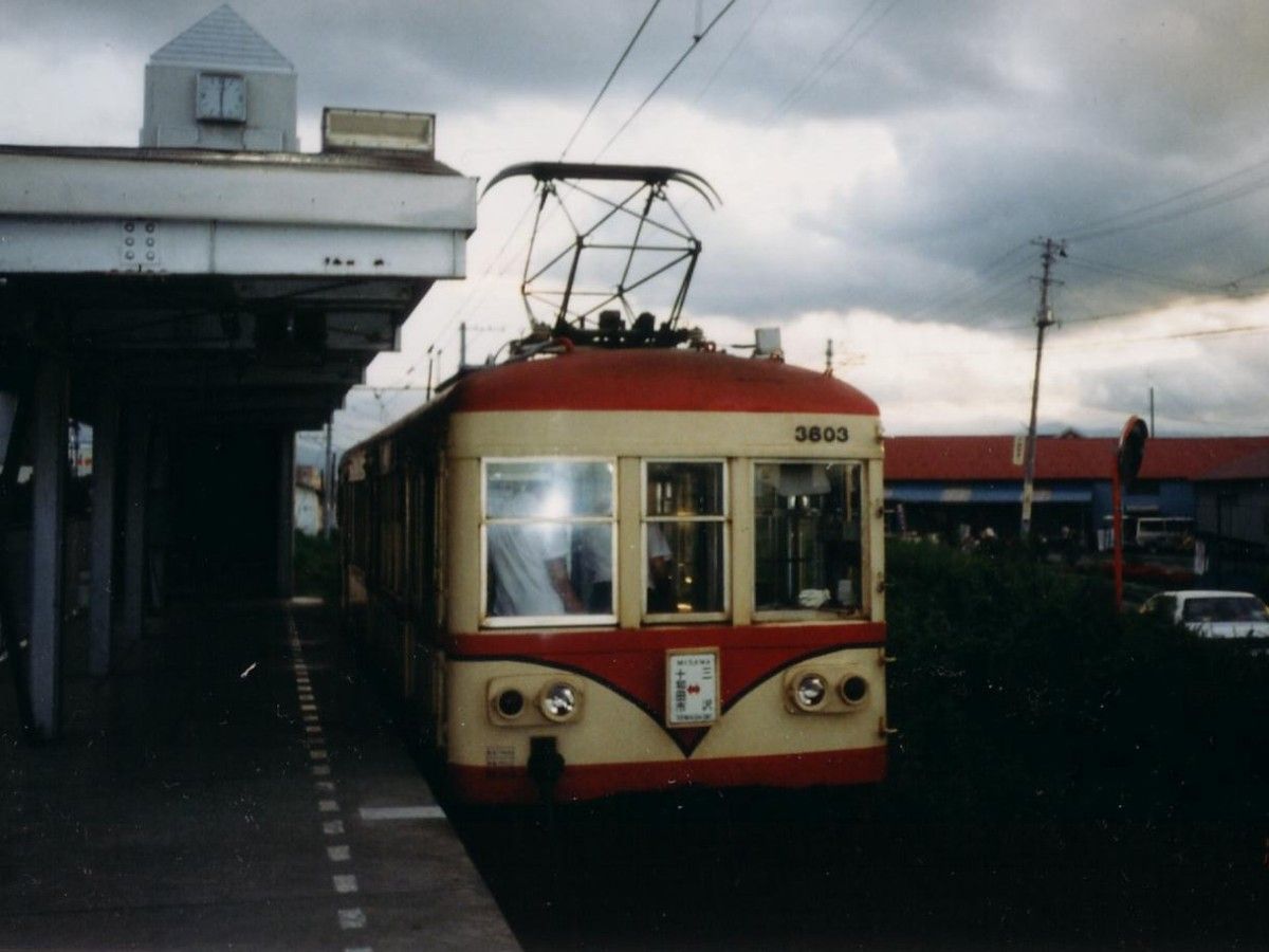 十和田市駅に停車中のモハ3600形3603。先述の廃止記念ストラップに使用されている車番と同じです。ワンマン化の約1か月半前に撮影。