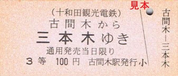 有料手回り品切符は十和田市駅改称前である三本木駅の駅名入り。〔復刻版乗車券(古間木駅)〕