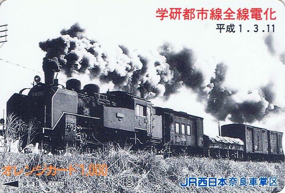 【JR西日本奈良車掌区発行 学研都市線全線電化記念オレンジカード(平成元年3月11日)】