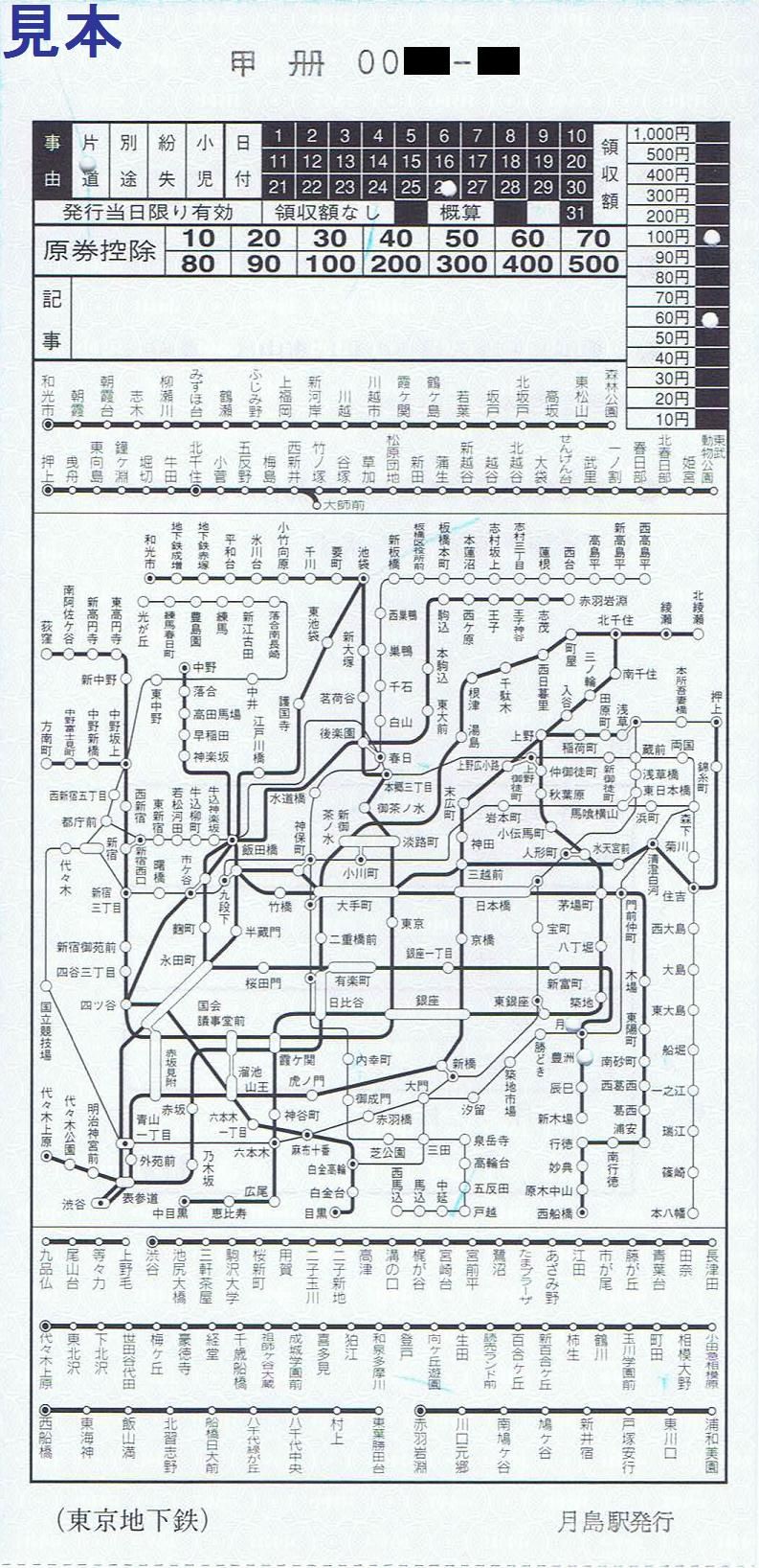 訪問日に趣味目的で発券いただけた駅の分だけ掲載致します。有楽町線の駅で東京地下鉄他路線と接続しない駅では有楽町、月島の2駅で購入できました。これ以外の東京地下鉄他路線と接続する駅では飯田橋駅で購入しています。なお、副都心線開業前である相当前の発売状況ですので、現在でも同じ駅で購入可能か分かりません。
