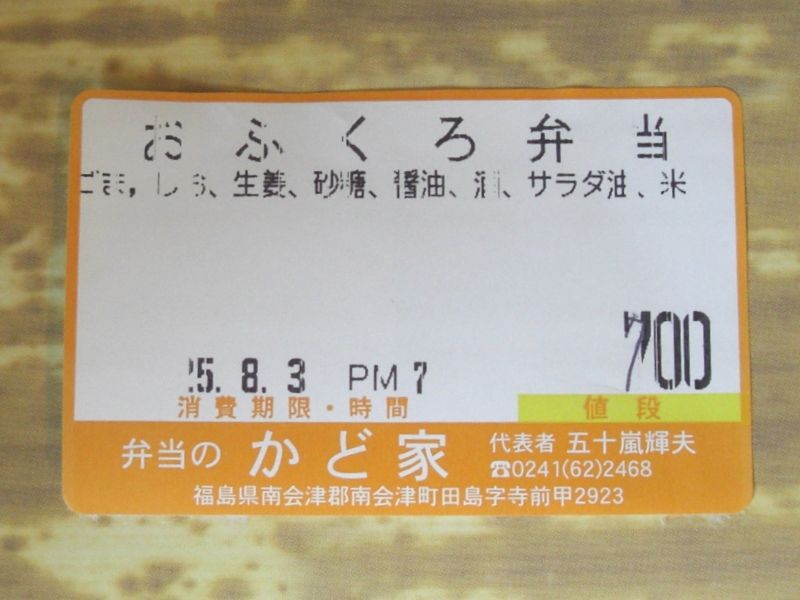 《かど家 南会津おふくろ弁当(平成25年8月3日購入)》