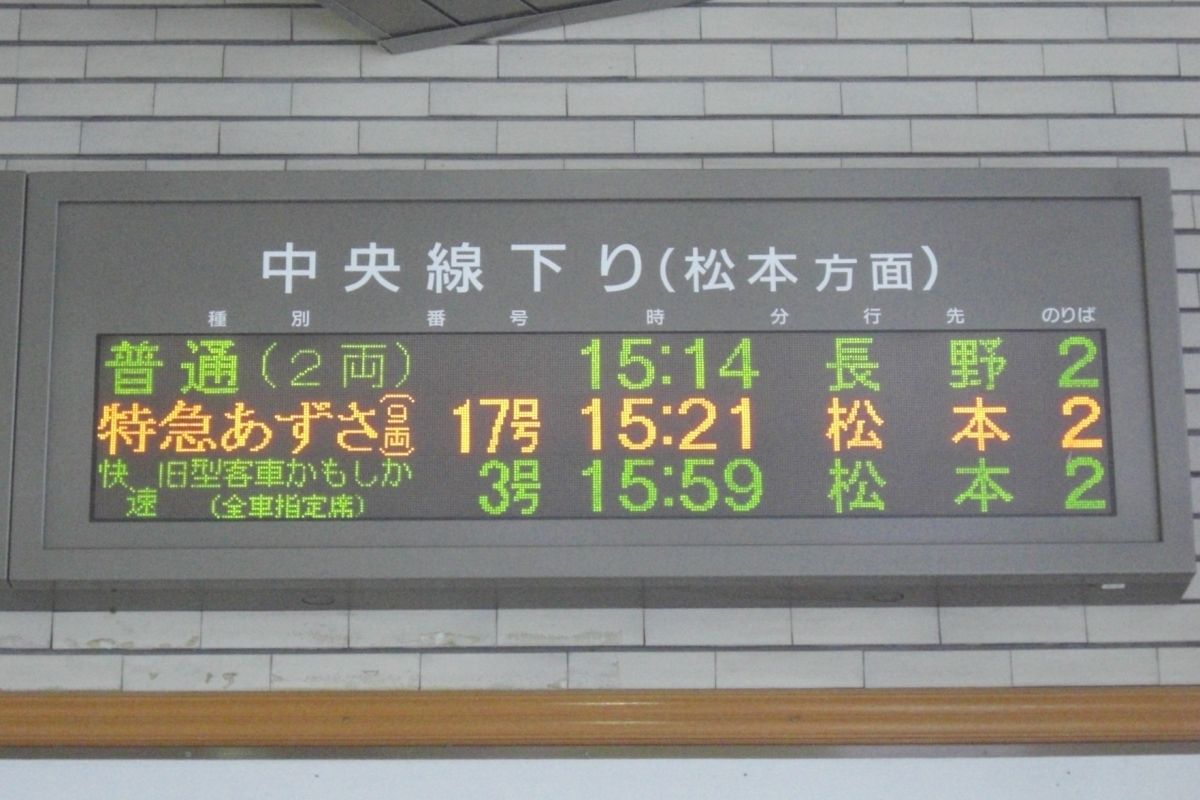 →辰野17:06着→塩尻17:34着→松本17:59着