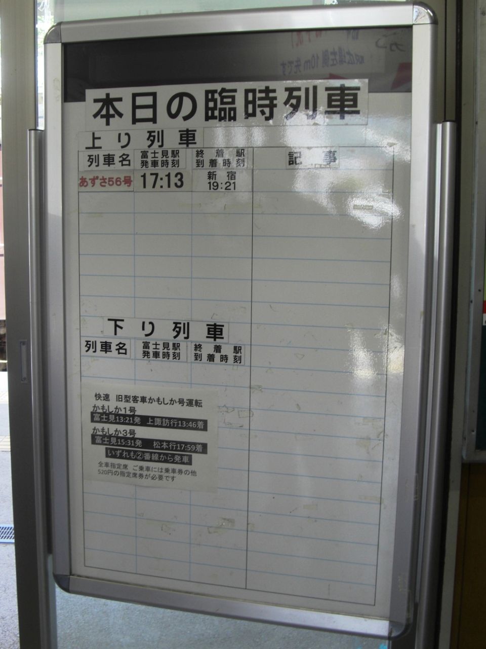 ・4号 上諏訪14:50発→茅野15:00着→富士見15:14着