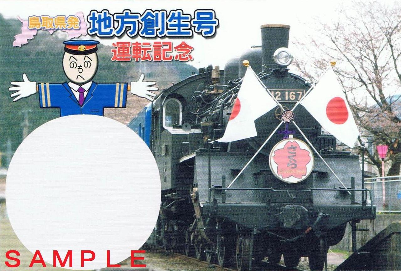 若桜鉄道では、2015年4月11日に若桜線若桜〜八東間の線路を閉鎖し、同社で保存されている蒸気機関車(C12 167)・客車(12系3両)・ディーゼル機関車(DD16 7)を本線上で走行させる『SL走行社会実験』(SL・DL走行イベント)を実施。実験の実施主体は八頭町観光協会と若桜町観光協会でした。走行した列車には『鳥取県発地方創生号』の愛称が付けられましたが、機械扱いのため乗車が出来ず、かわりに車内に『かかし』を乗せて話題となりました。