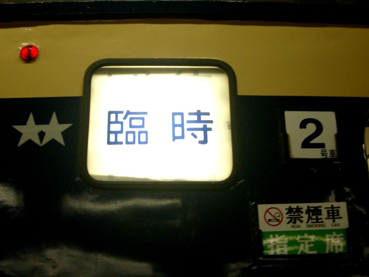 写真右は車体側面の方向幕で『臨時』の表示。