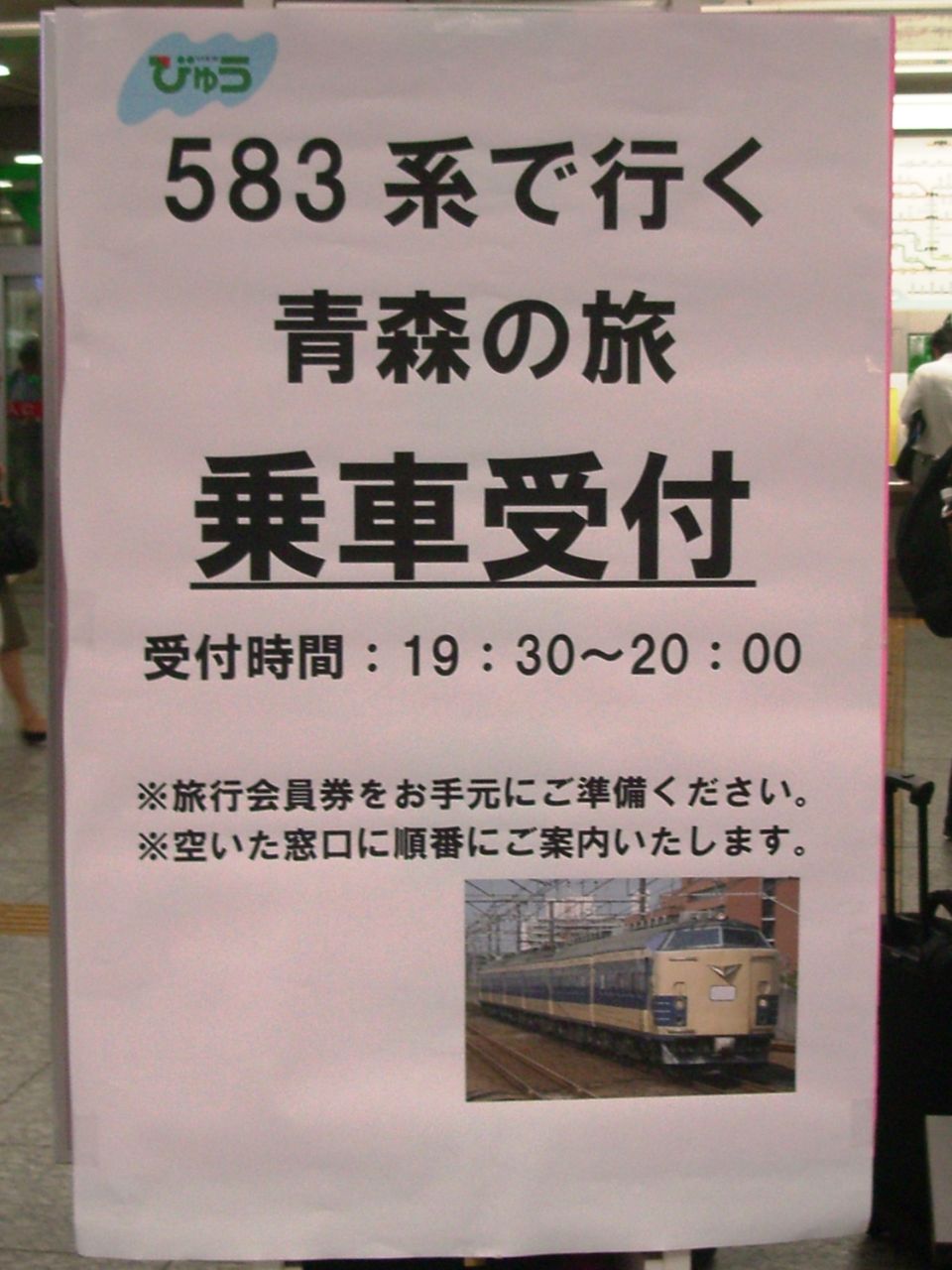 同駅では長時間停車。青い森鉄道がグッズ、補充券(下記リンク参照)を発売。終点近くで初めての583系関連イベントです。《青森駅》