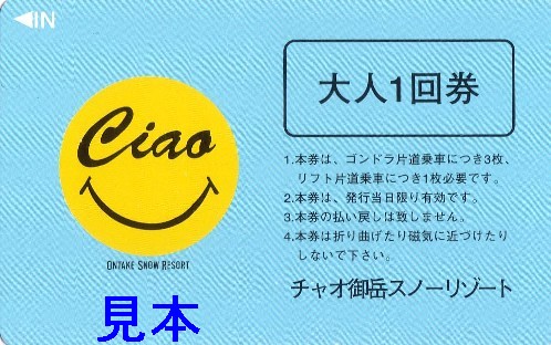 このスキー場で唯一の手売り券が大人1回券(350円。子供は無料の為、ありません)ですが、紙ではなく磁気式のプリペイドカードです。カード裏面に文章は見られませんが、プリペイドカードの特徴でグレー色をしています。1乗車につき、リフトは1枚、ゴンドラは3枚必要となります。