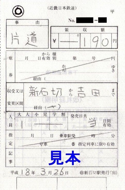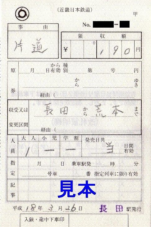 さて、硬券入場券については大阪市交通局管理の長田駅を除く各駅にありました。一応、奈良線と共用の生駒駅分も購入しています。各駅とも小児専用券はありませんでした。