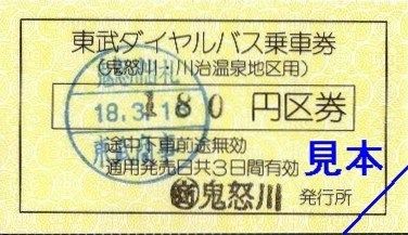 《東武ダイヤルバス乗車券(鬼怒川・川治温泉地区用)180円区間》