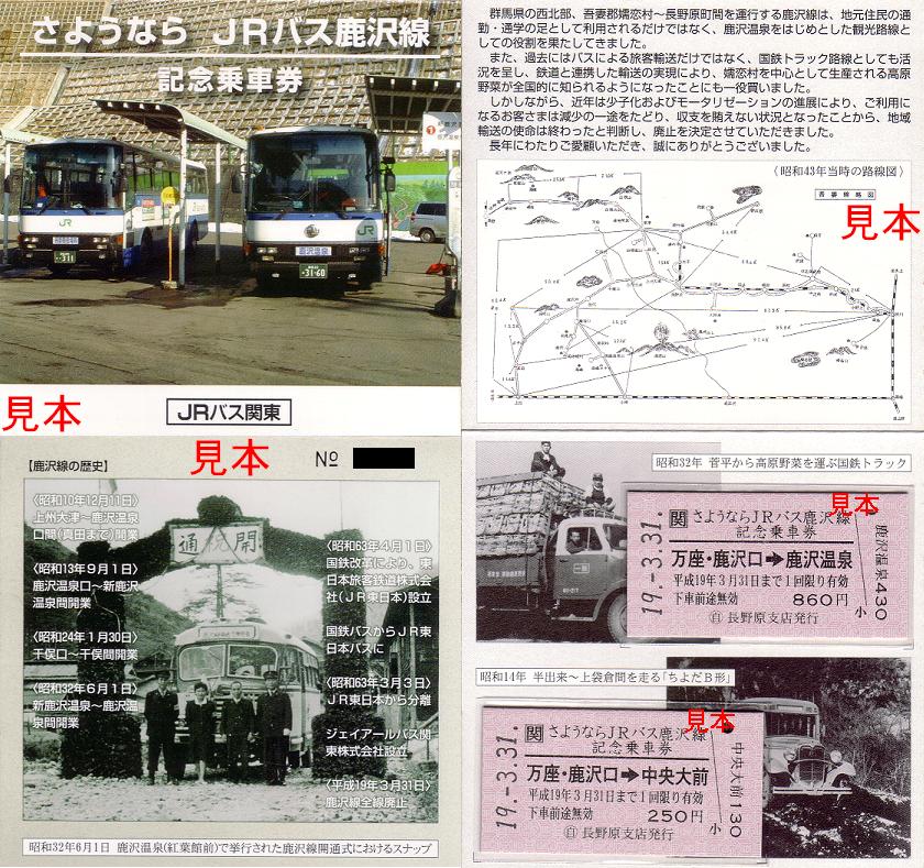 JRバス関東の運行する鹿沢線の平成19年3月31日廃止に伴い、その記念乗車券が発売されました。