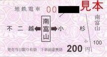 ・軟券乗車券 不二越←南富山→小杉 200円