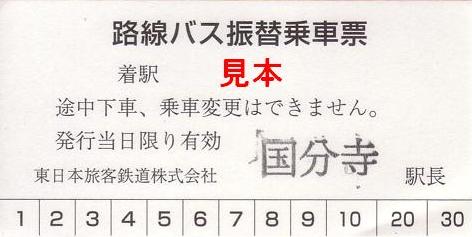 ホリデーパスを使用し吉祥寺、三鷹、国分寺、八王子、高尾、拝島を廻る。八王子と拝島のものは裏面にナンバーの入らないもので、紙は非常に薄いタイプ。
