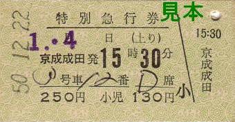 ・特別急行券(上り) 京成成田発15時30分