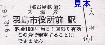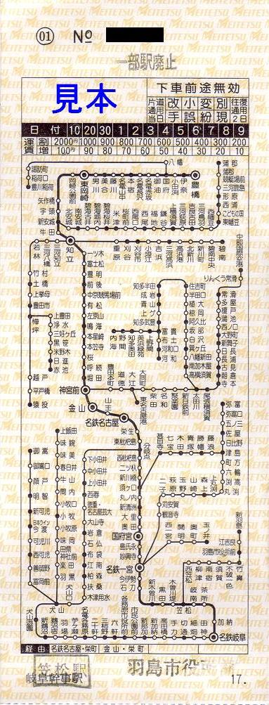 起点の笠松と羽島市役所前に有り。柳津は無いとの事。両駅とも『岐阜幹事駅』の印刷上に『(□囲み)笠松駅』のゴム印。羽島市役所前駅では更にその右側に『羽島市役所前』のゴム印が押されていました。