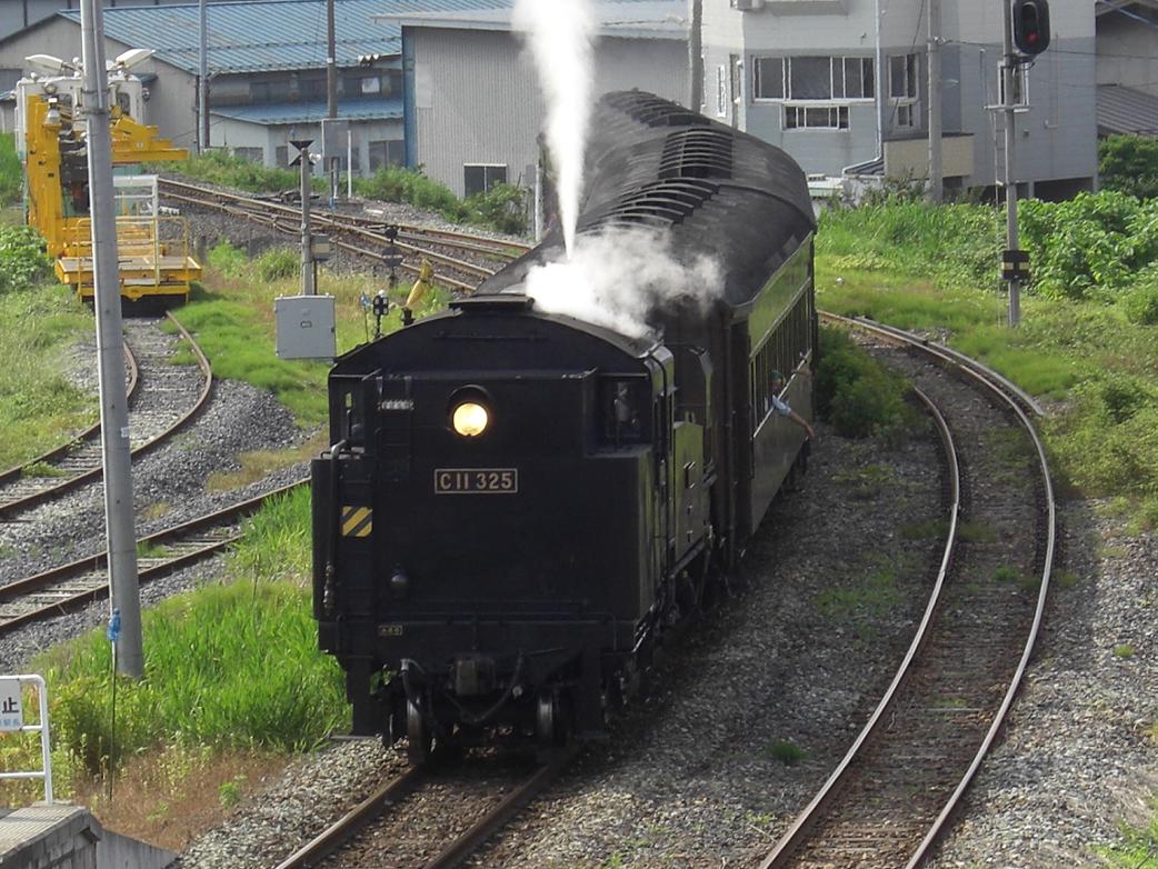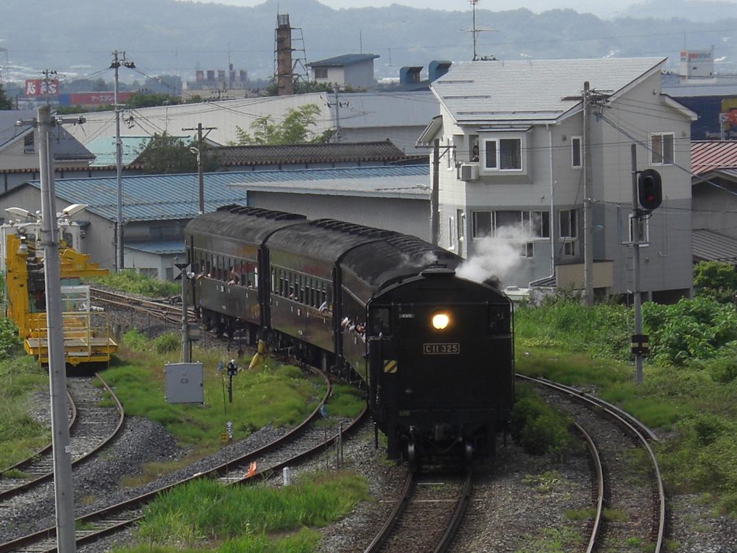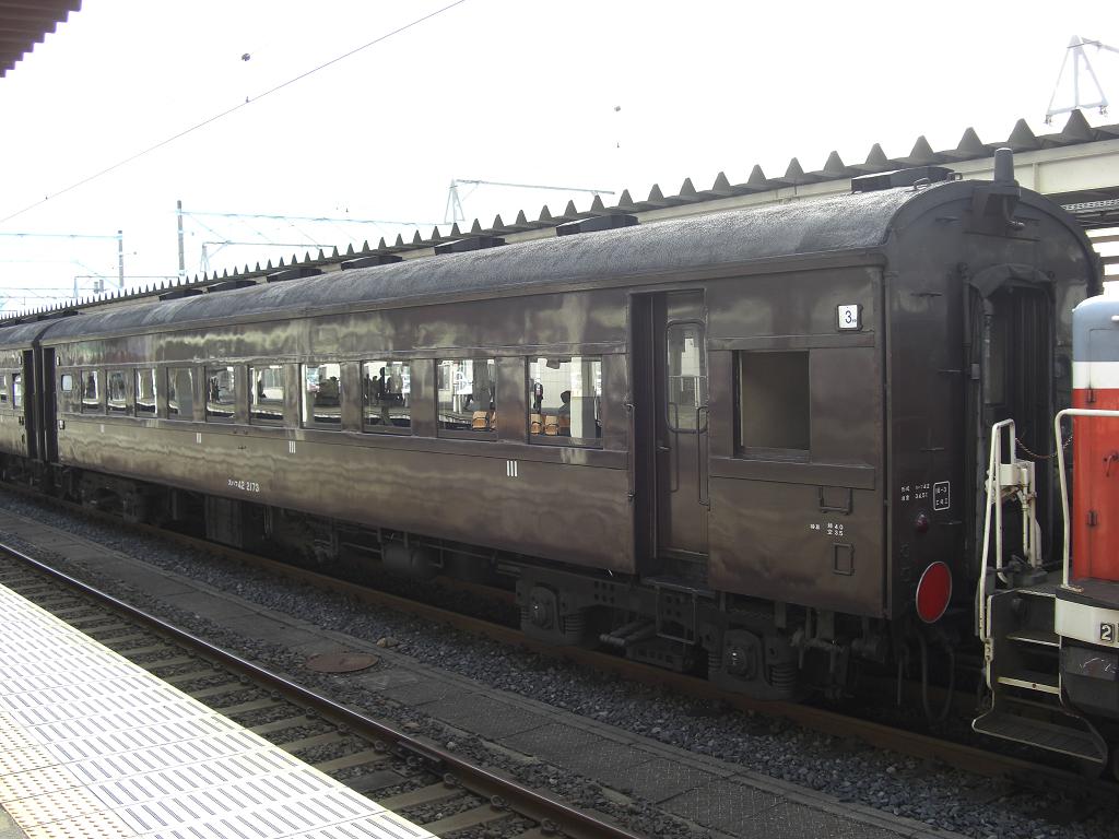 上り列車の山形駅到着後に撮影。山形駅側からC11325+スハフ322357+オハ472266+スハフ422173で運転され、回送時には左沢駅側にDE101760が連結されました。