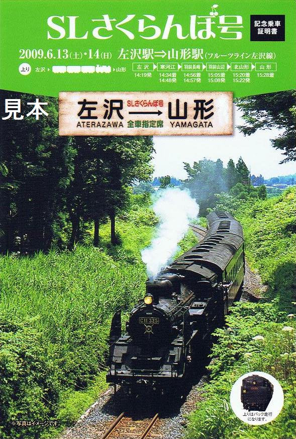 《SLさくらんぼ号記念乗車証明書(平成21年6月14日)》