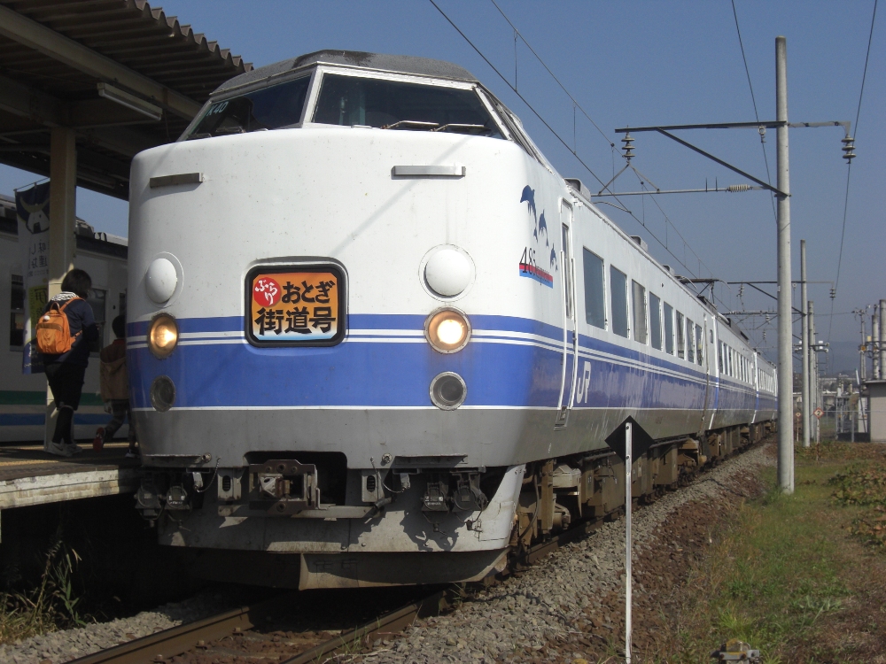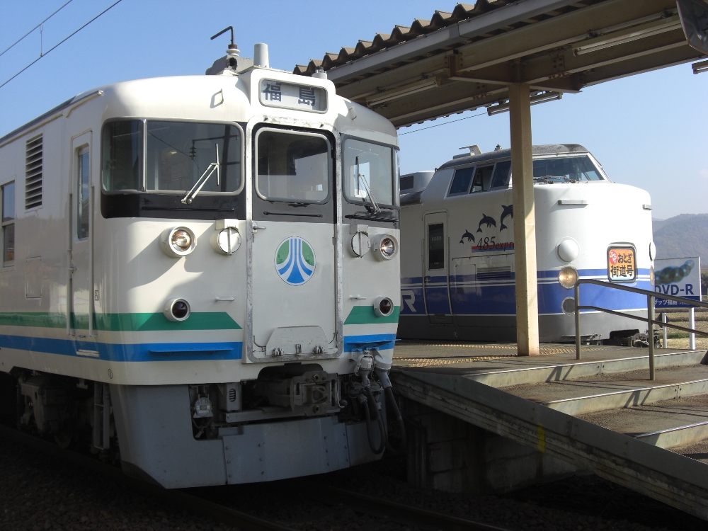 阿武隈急行の定期列車ではJR東日本東北本線槻木〜仙台間への片乗り入れを行っていますが、以前は、郡山〜福島〜富野間でJR東日本と相互乗り入れも行っていました。最近ではJR東日本所属車を使用した臨時列車が運転されるようになり、平成20・21・22年には485系ドルフィンを使用した快速『ぶらりおとぎ街道号』が仙台〜槻木〜梁川〜福島に運行されました。
