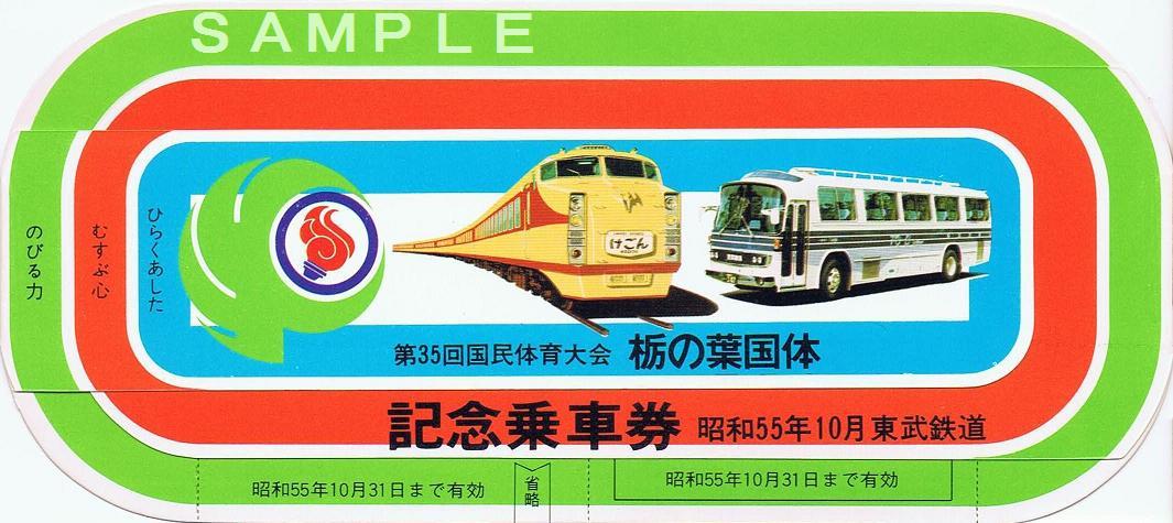 《第35回国民体育大会 栃の葉国体記念乗車券(昭和55年10月)》