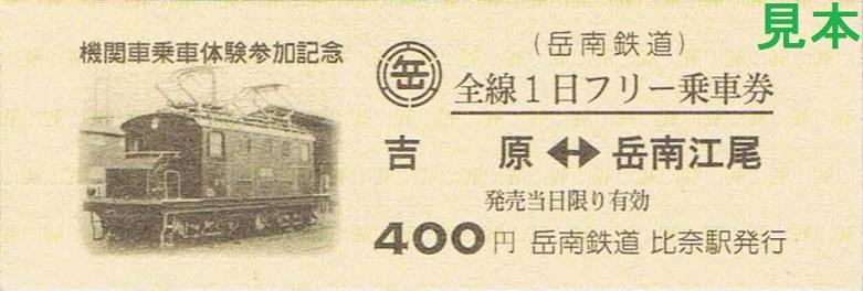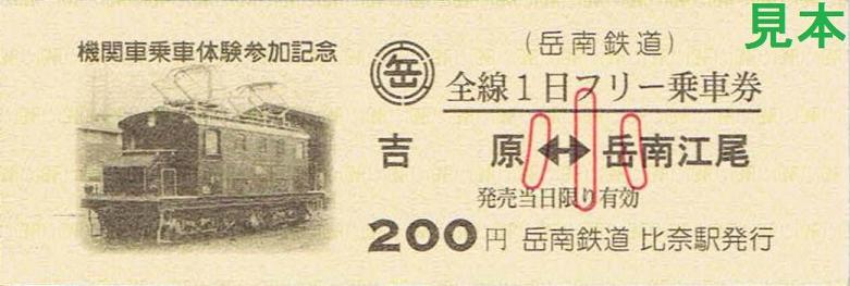 なお、吉原駅から比奈駅まで岳南鉄道を利用する体験乗車参加者は、吉原駅で氏名を告げれば、比奈駅下車時に参加費用を支払いフリー乗車券を受け取ることが出来ました。券番は小児用・大人用とも同一。《機関車祭2009開催記念全駅乗車券セット(平成21年12月12日)》