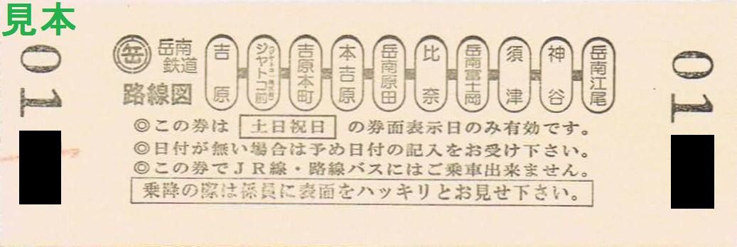 なお、吉原駅から比奈駅まで岳南鉄道を利用する体験乗車参加者は、吉原駅で氏名を告げれば、比奈駅下車時に参加費用を支払いフリー乗車券を受け取ることが出来ました。券番は小児用・大人用とも同一。