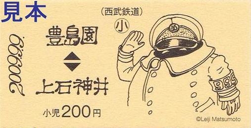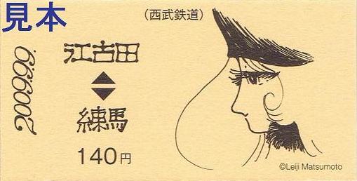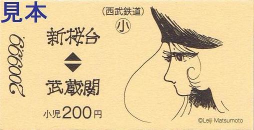 松本零士作『銀河鉄道999』デザインの記念乗車券。西武鉄道の銀河鉄道999柄記念乗車券は、今回が3回目になると思います。